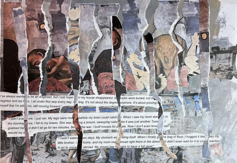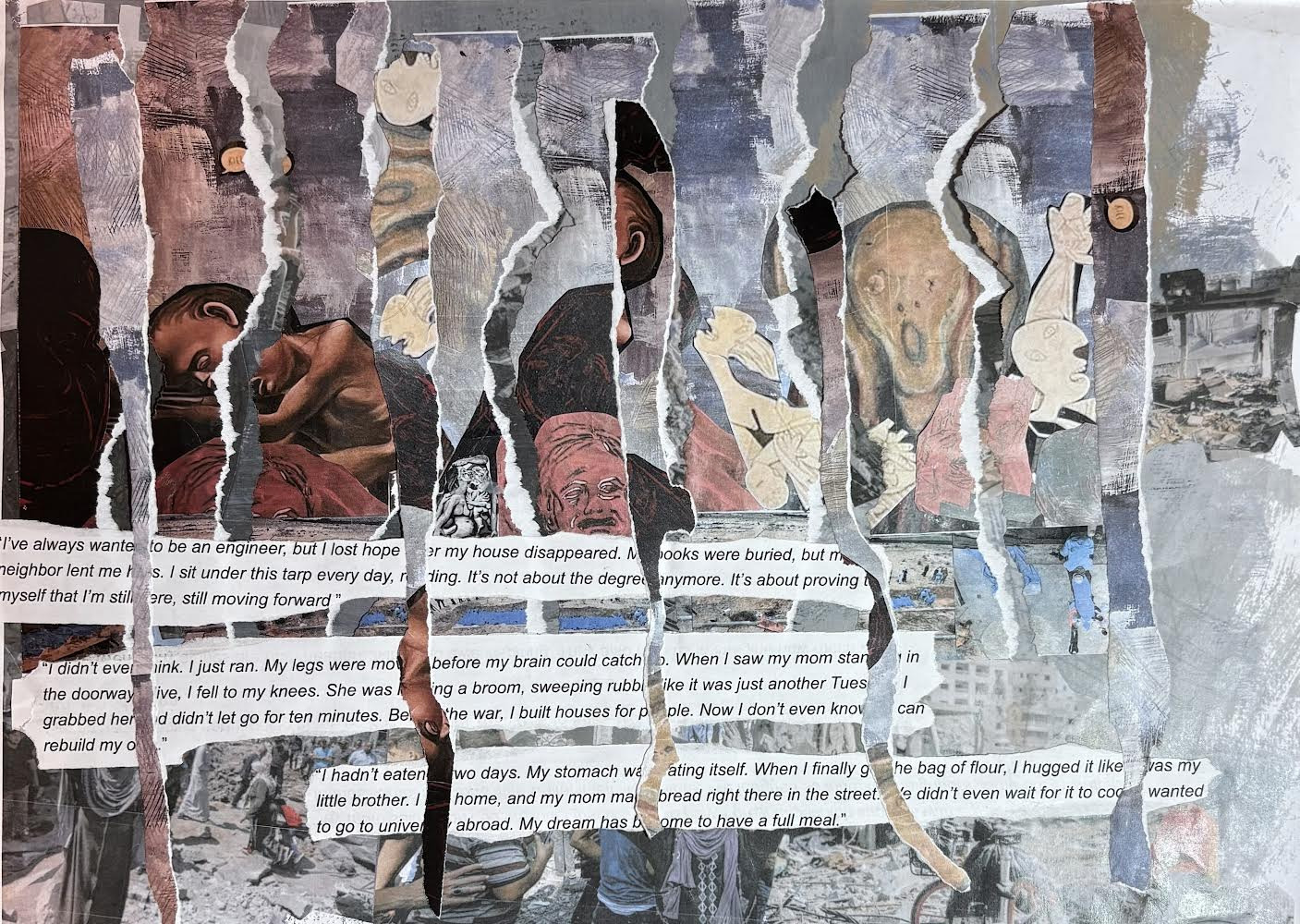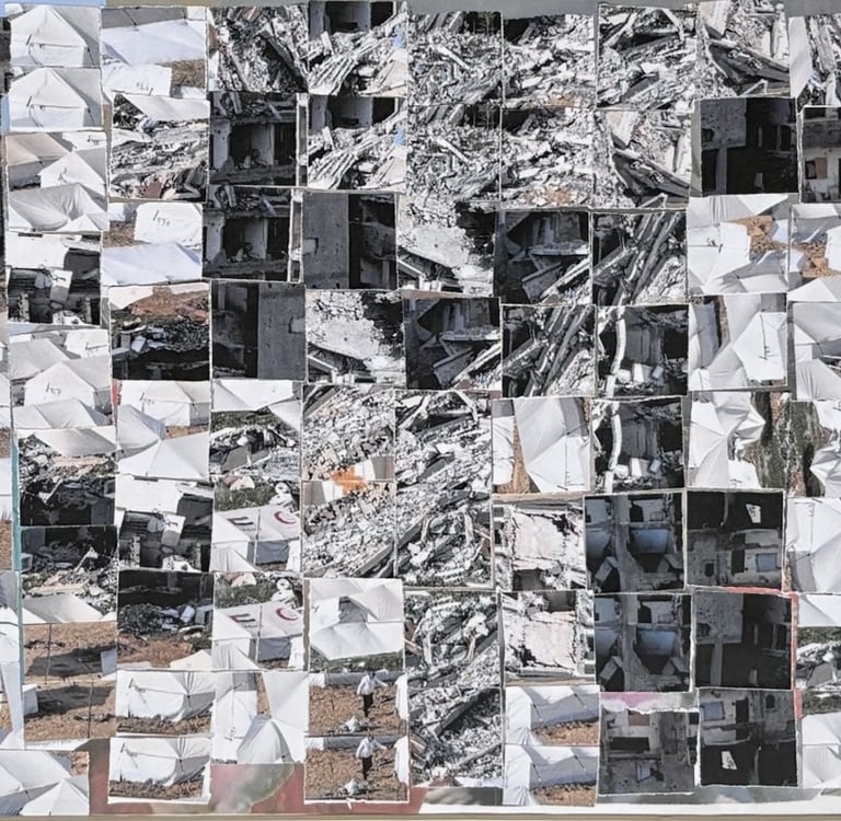 I started working on these collages as tearing printed images of Gaza seemed an apt way to reflect how Gaza itself was being torn apart.